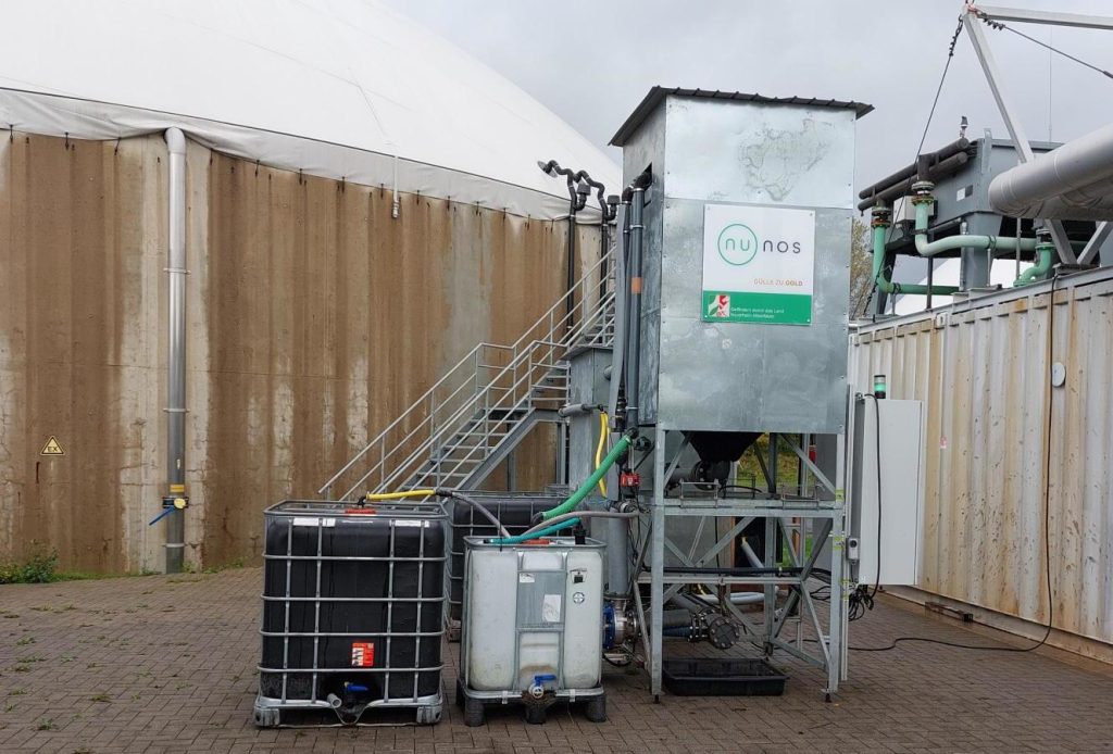 Die Aufbereitungstechnologie von NUNOS basiert auf einem rein biologischen Prozess und wird direkt auf landwirtschaftlichen Betrieben als eigenständige Anlage installiert. So können direkt vor Ort anfallende Rindergülle und Gärreste veredelt werden.